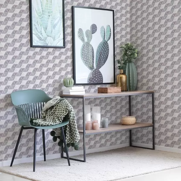 Papel tapiz Triángulos que combinan tonos lila y grises Nr. a00917v2