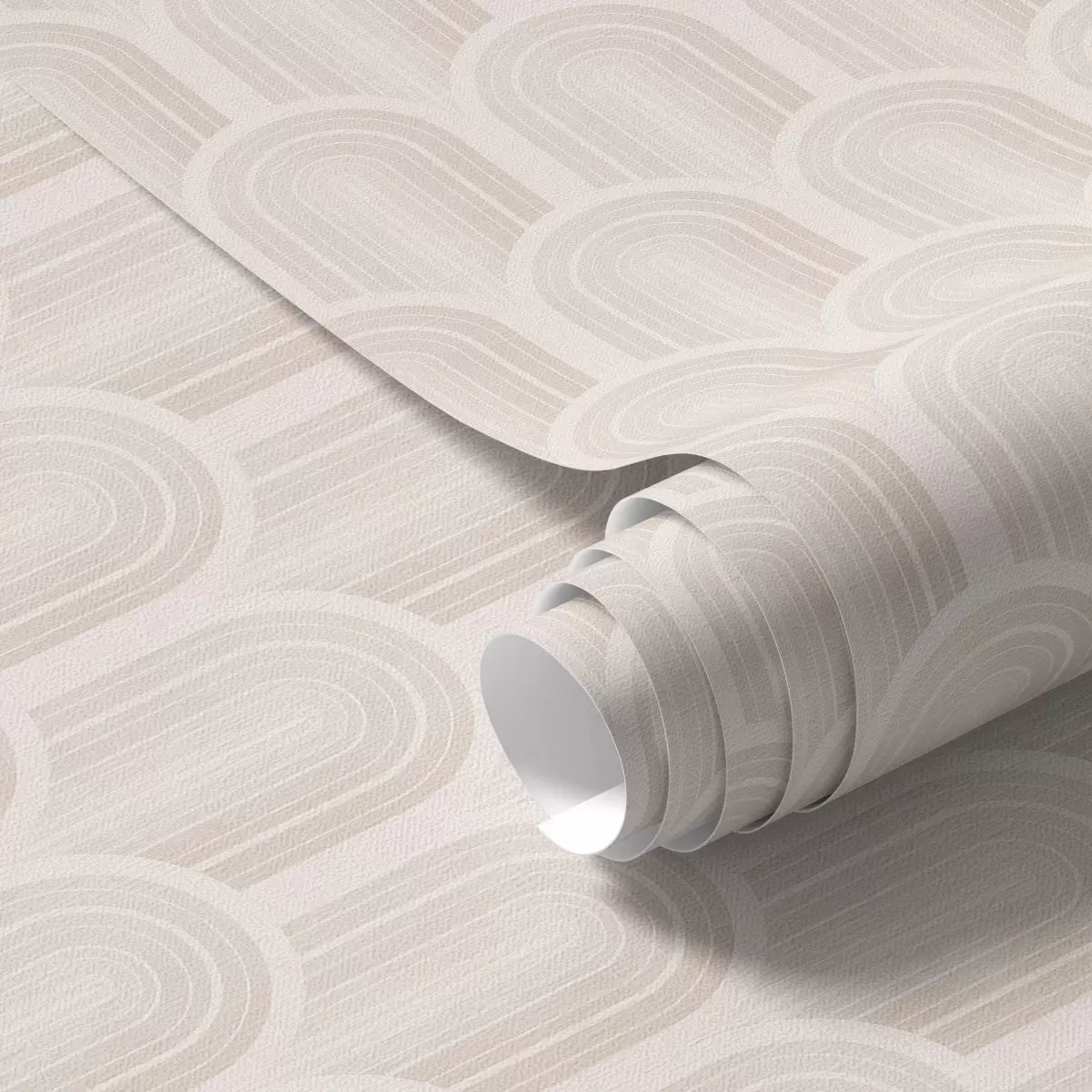 Papel tapiz Fila de formas arqueadas en suaves rayas beige, estilo retro. Nr. a00923
