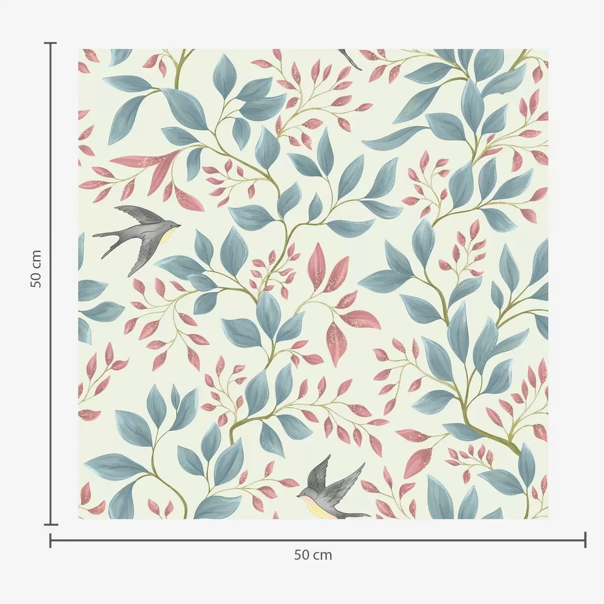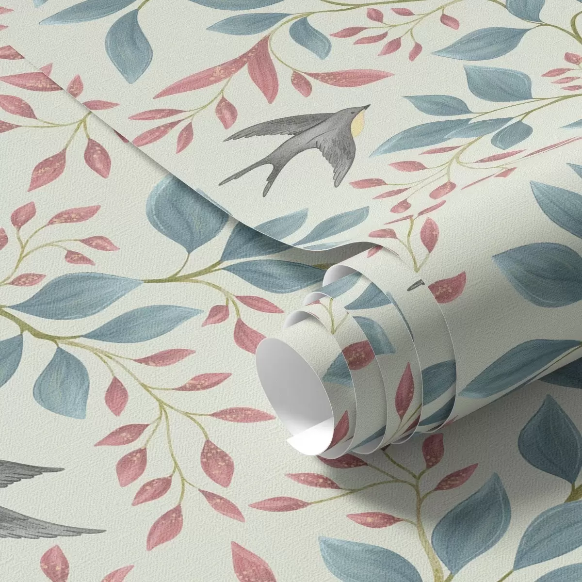 Papel tapiz Ramas aireadas y pájaros sobre un fondo menta claro. Nr. a00933v1
