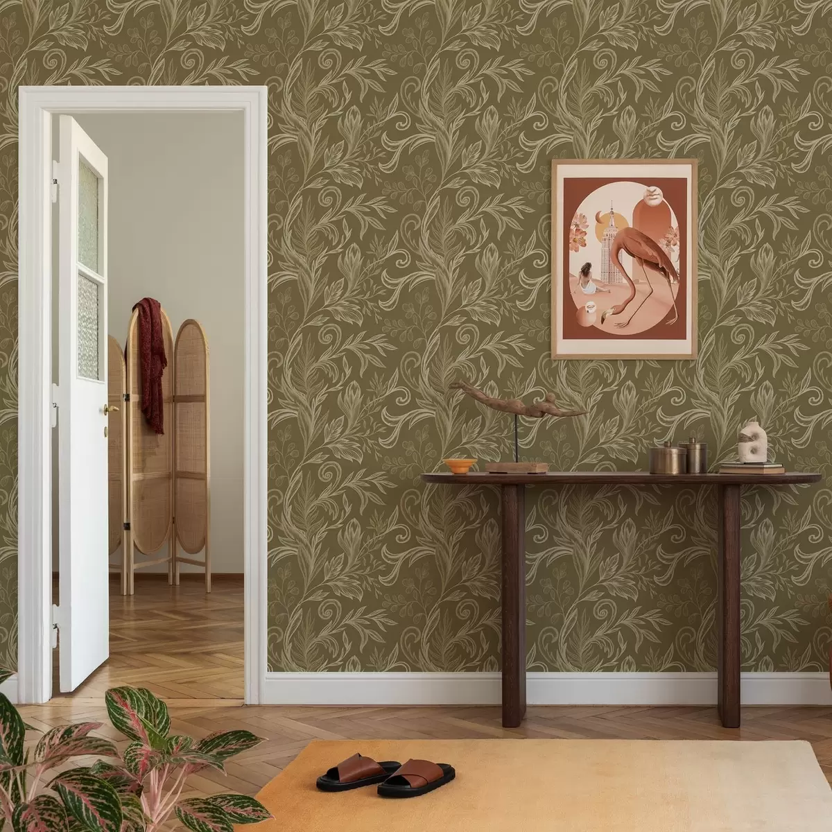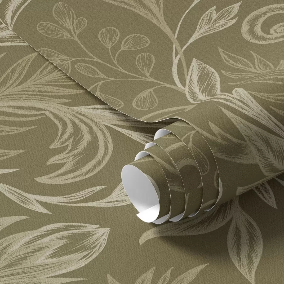 Papel tapiz Hojas rizadas de color caqui cálido con ligeros toques crema. Nr. a00935v4