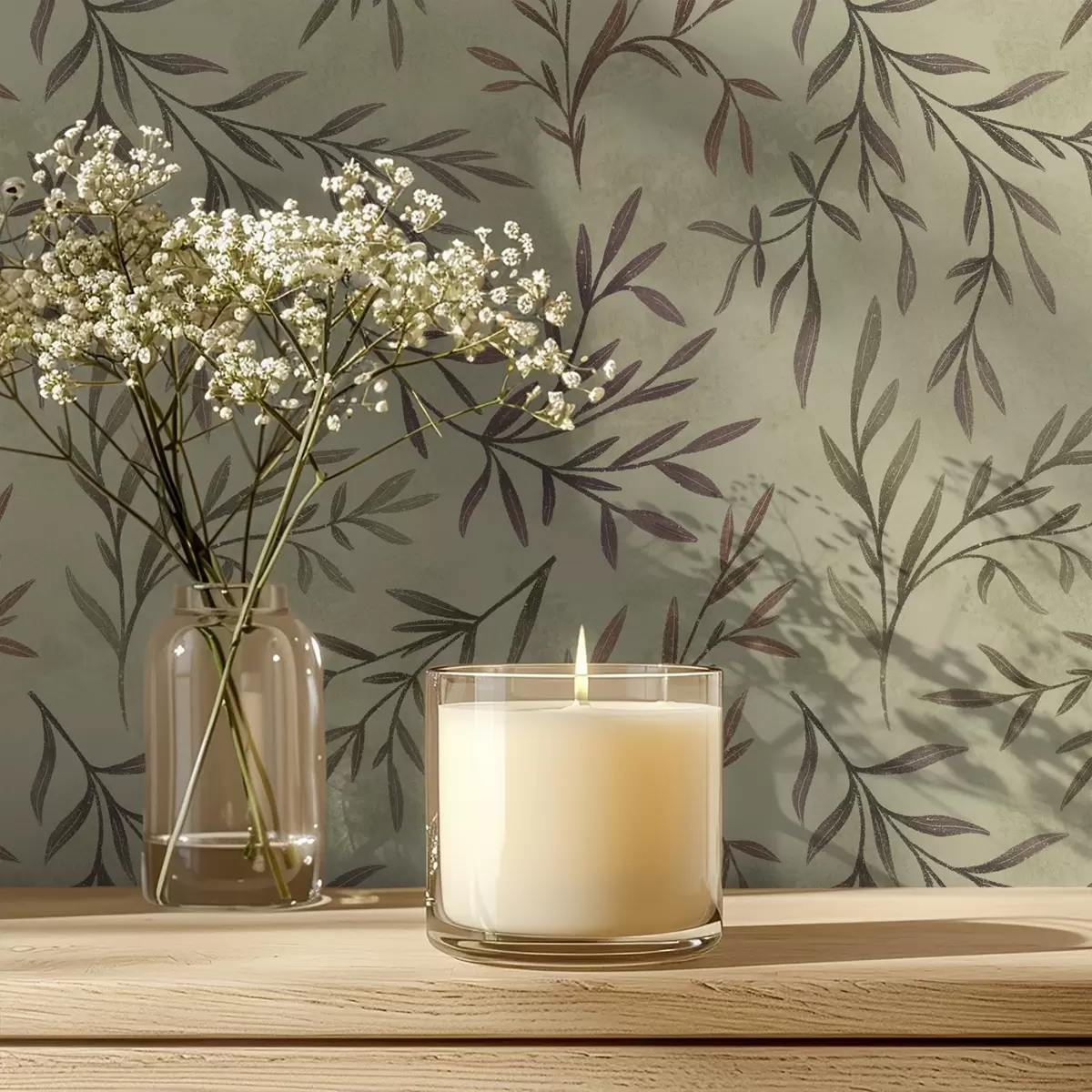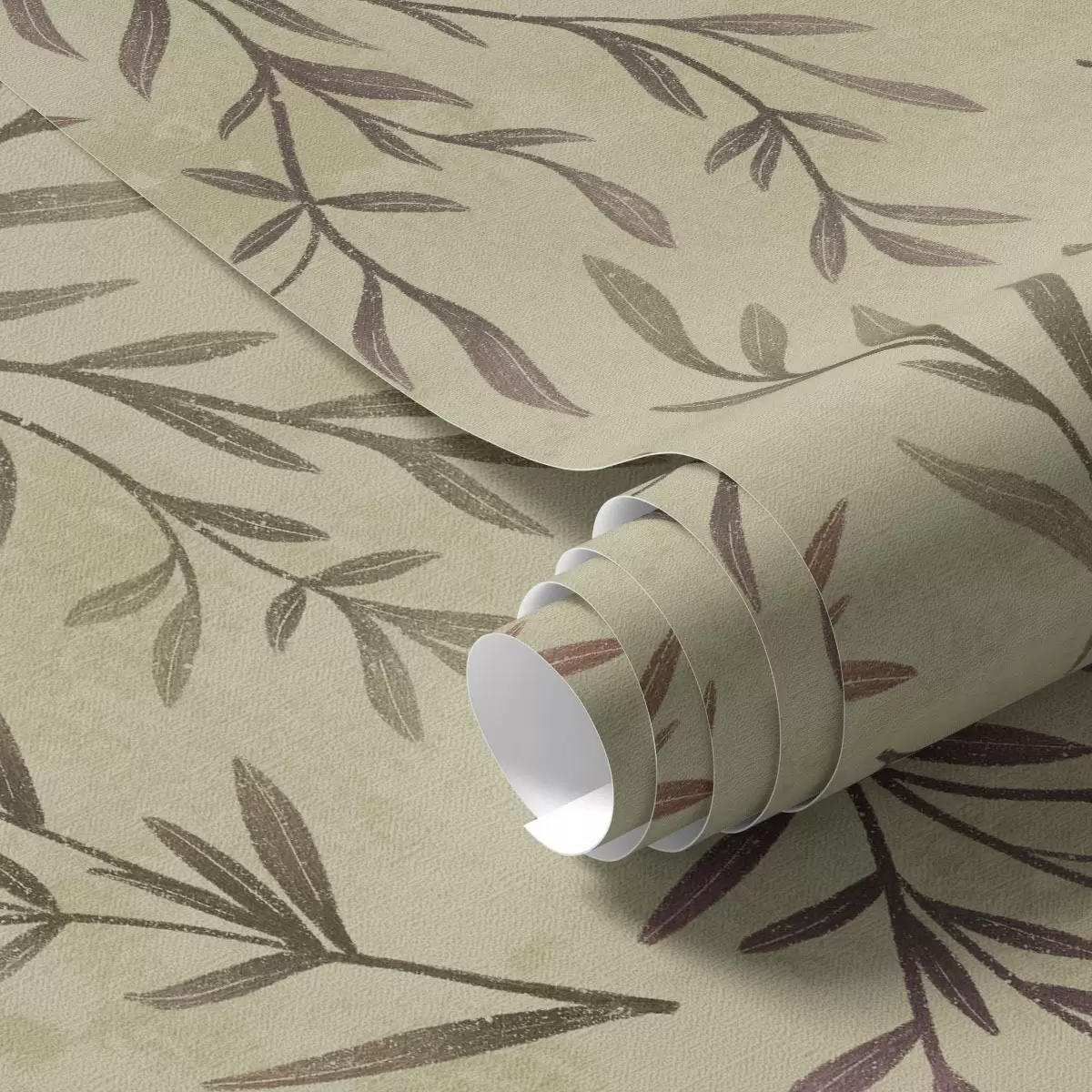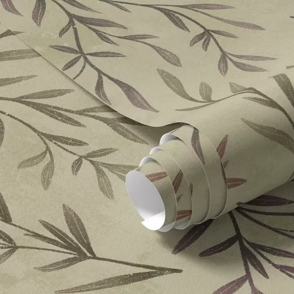 Papel tapiz Ramas de lila y verde con hojas sobre un fondo cálido Nr. a00936v4