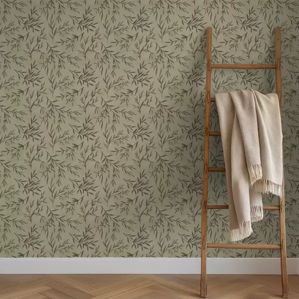 Papel tapiz Ramas de lila y verde con hojas sobre un fondo cálido Nr. a00936v4