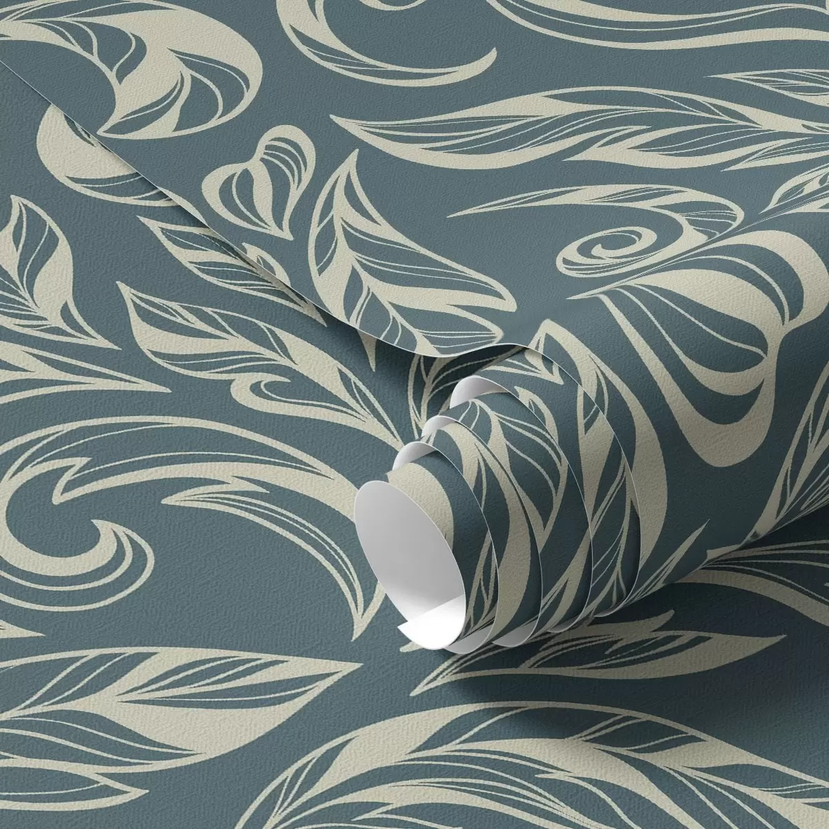 Papel tapiz Patrón de hojas con líneas claras sobre fondo azul grisáceo. Nr. a00940