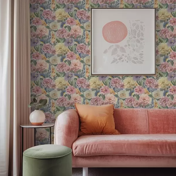 Papel tapiz Flores difuminadas con pincel en tonos pastel, paleta de colores suaves Nr. a00954