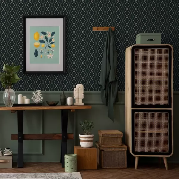 Papel pintado Fondo verde azulado oscuro con una rejilla de rombos repetitiva a00975v1