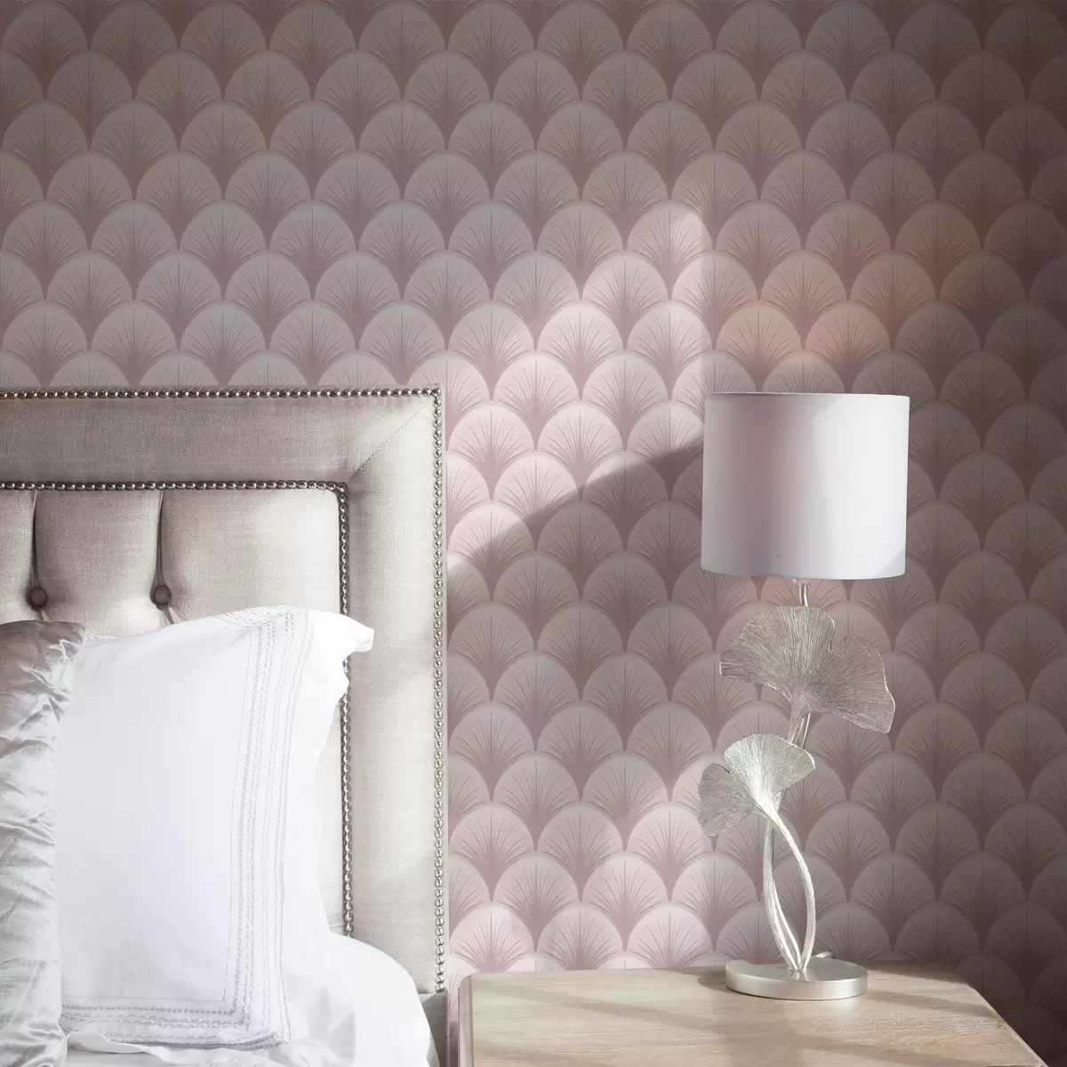 Papel tapiz Arcos en forma de abanico de color rosa pálido con rayos radiales. Nr. a00978v3