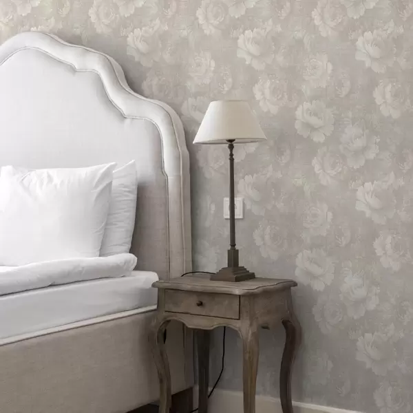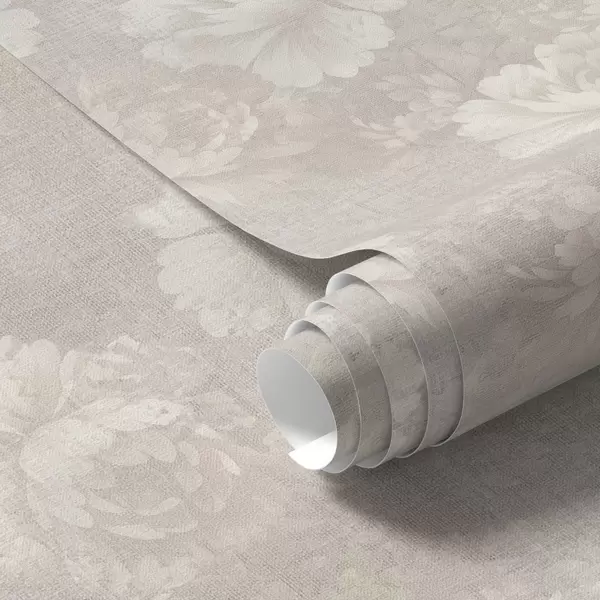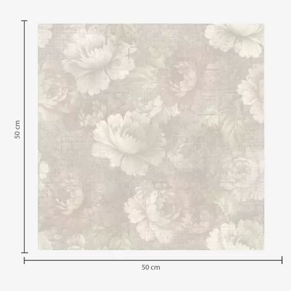 Papel tapiz Peonías descoloridas sobre textura de lino en una suave paleta de colores beige Nr. a01018