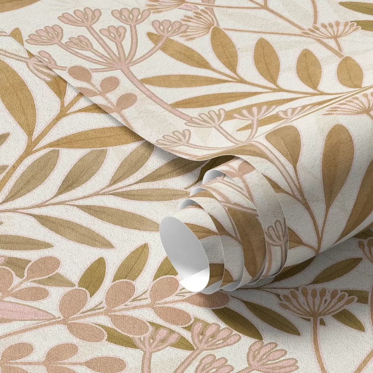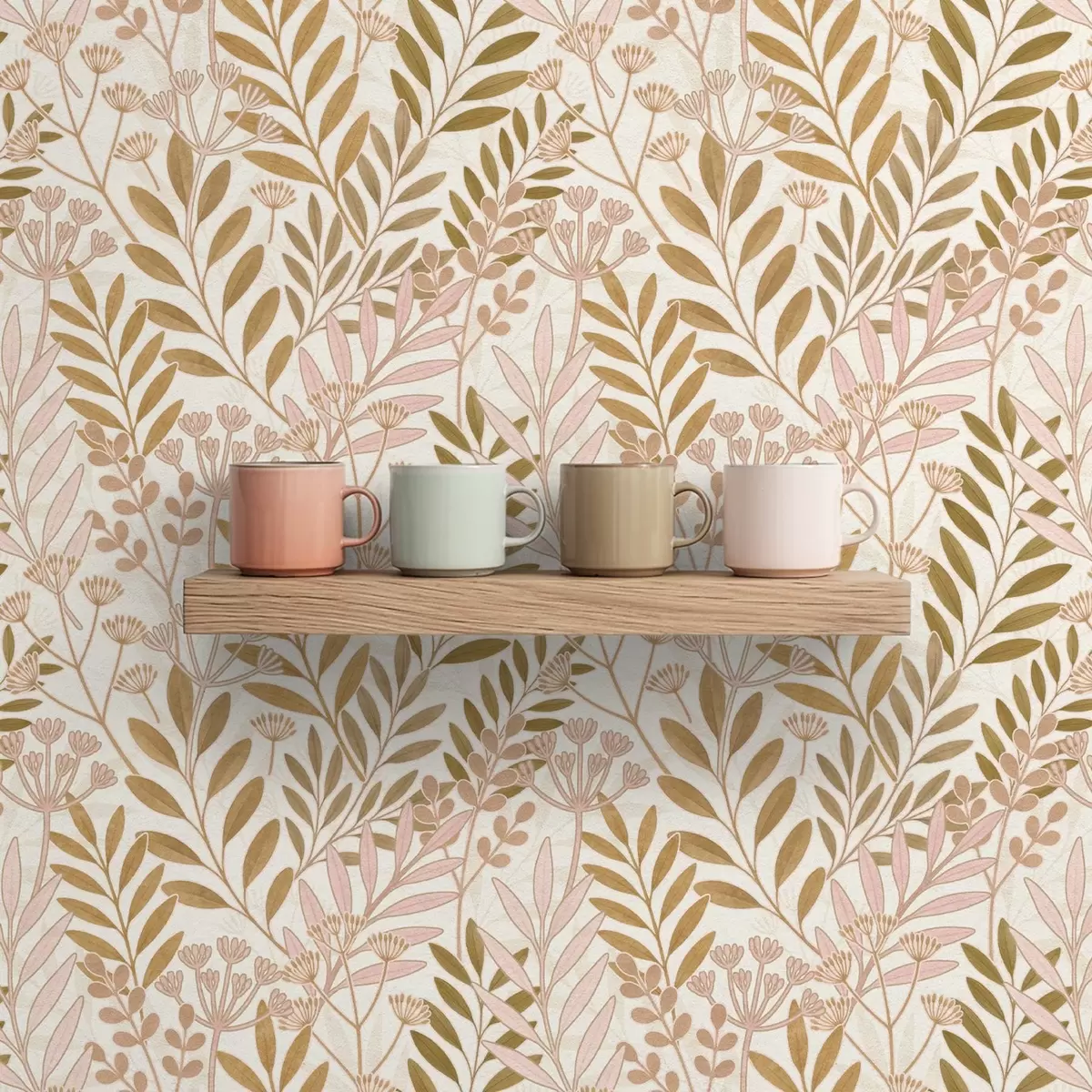 Papel tapiz Diseño botánico ligero con delicadas hojas en tonos rosa y avena. Nr. a01020v1