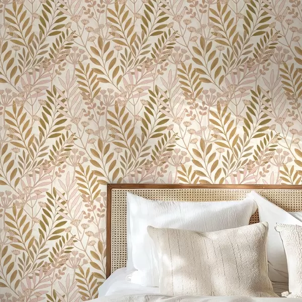 Papel pintado Diseño botánico ligero con delicadas hojas en tonos rosa y avena a01020v1