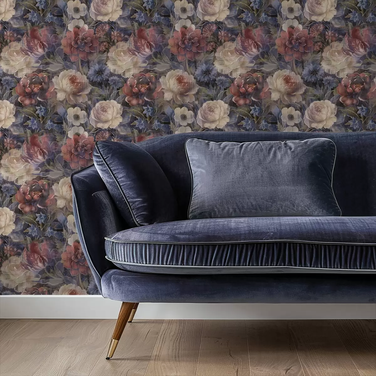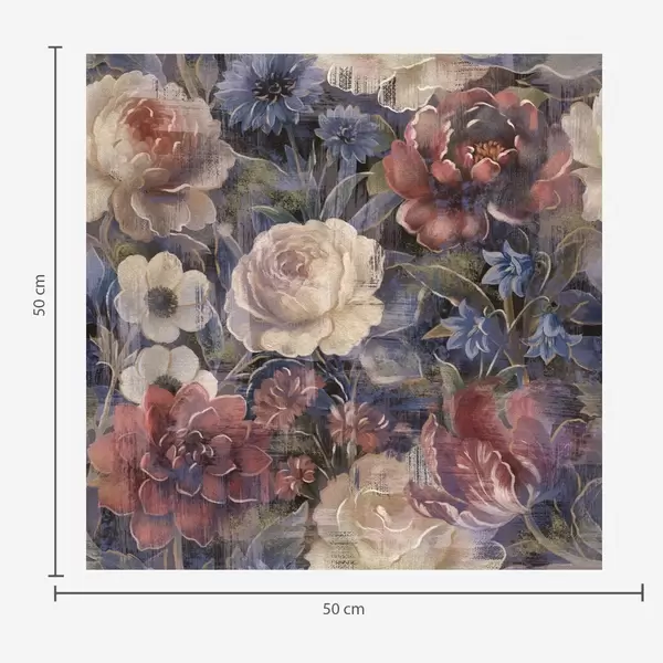 Papel tapiz Ramo pictórico de flores grandes sobre fondo índigo intenso. Nr. a01021