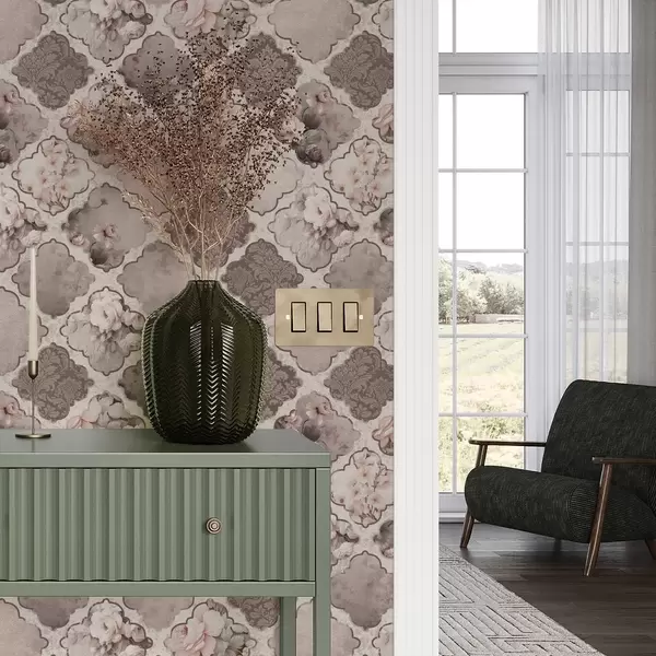 Papel pintado Romántico mosaico de medallones florales en tonos apagados a01027