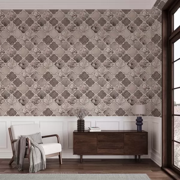 Papel tapiz Romántico mosaico de medallones florales en tonos apagados Nr. a01027