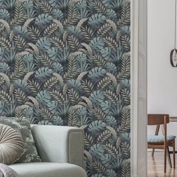 Papel tapiz Follaje tropical en tonos azul verdosos fríos Nr. a01035