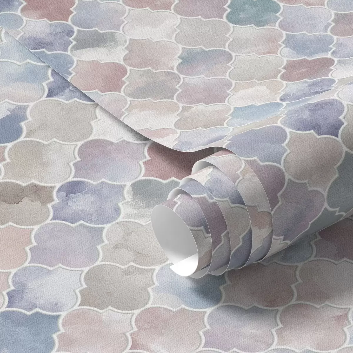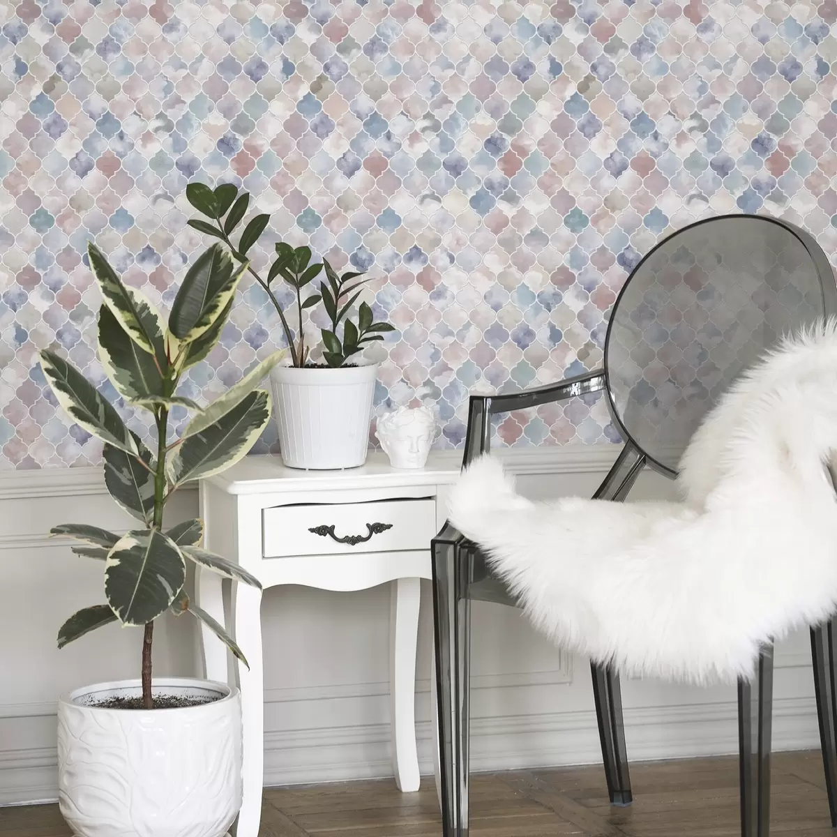 Papel tapiz Mosaico en tonos pastel claros con suaves formas marroquíes. Nr. a01039v1