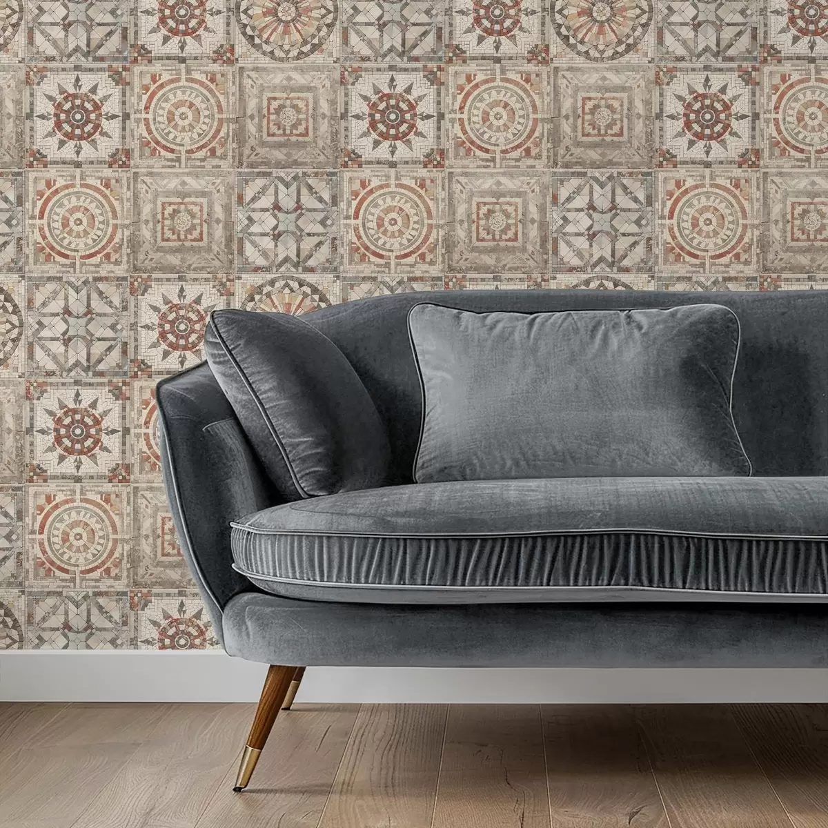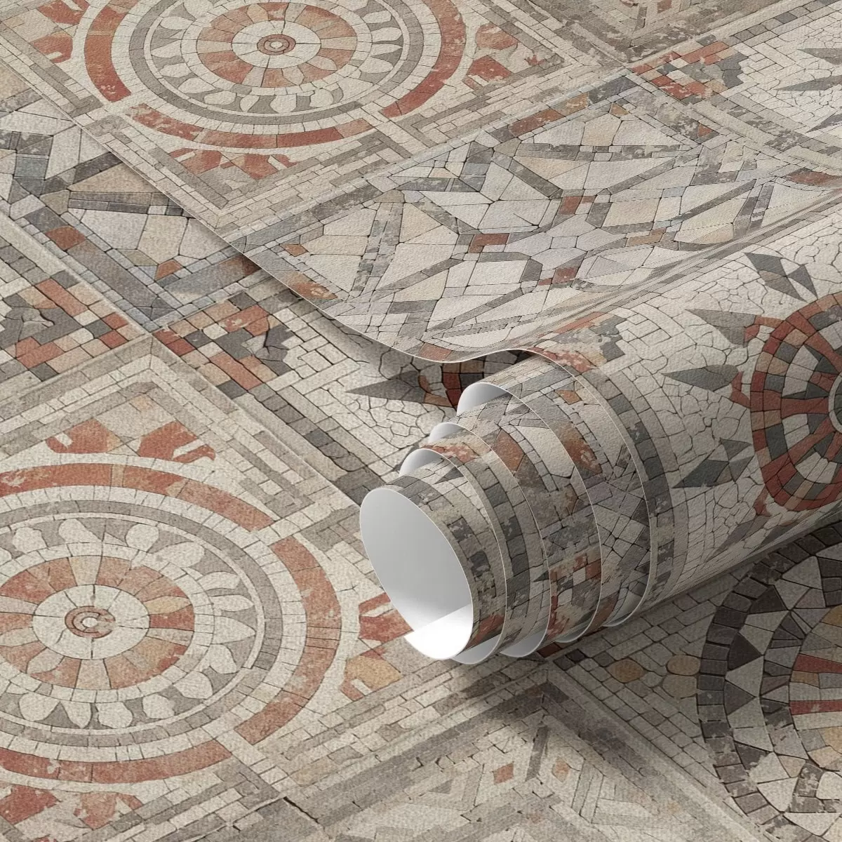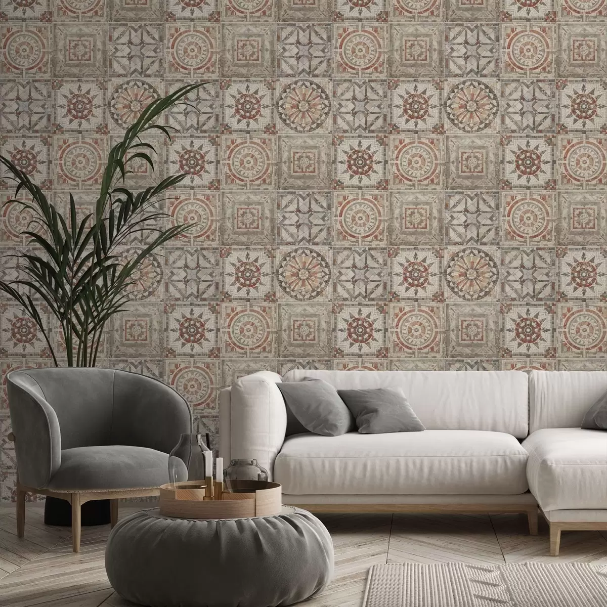 Papel tapiz Medallones antiguos de mosaico de piedra con detalles desgastados. Nr. a01042