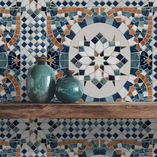 Papel tapiz Mosaico marroquí brillante en tonos azul turquesa Nr. a01043