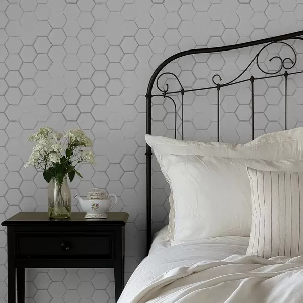 Papel tapiz Hexágonos tridimensionales blancos sobre un fondo liso Nr. a01059