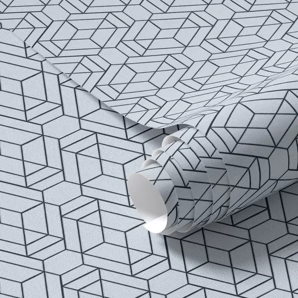 Papel tapiz Patrón geométrico de cubos azul claro Nr. a01066