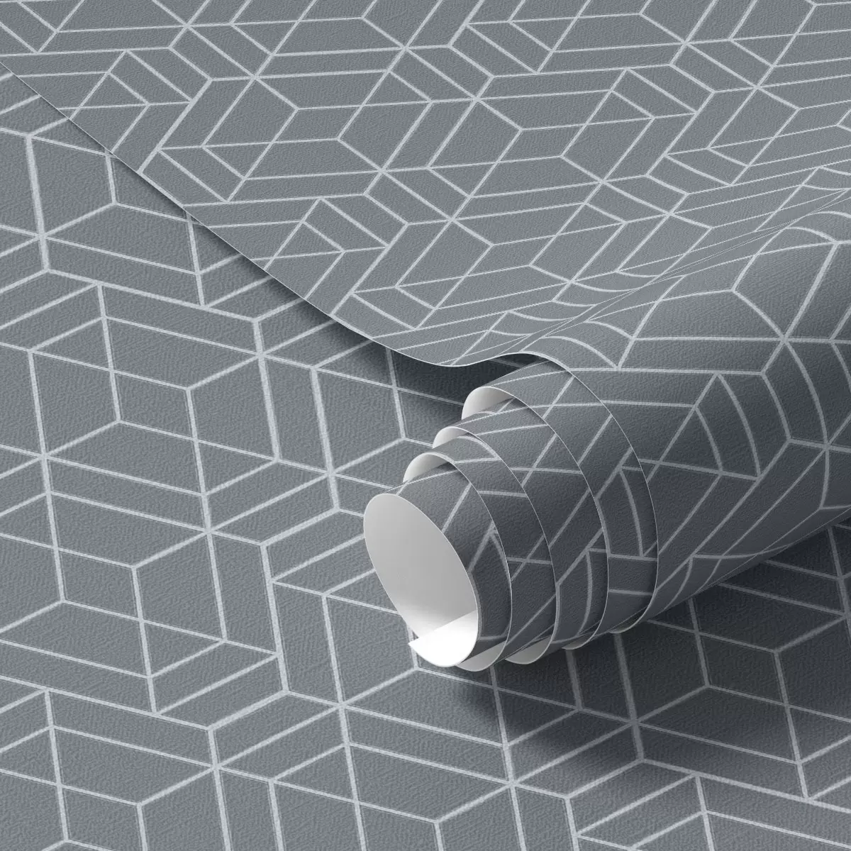 Papel tapiz Fondo gris con cubos tridimensionales blancos en una cuadrícula. Nr. a01067v2