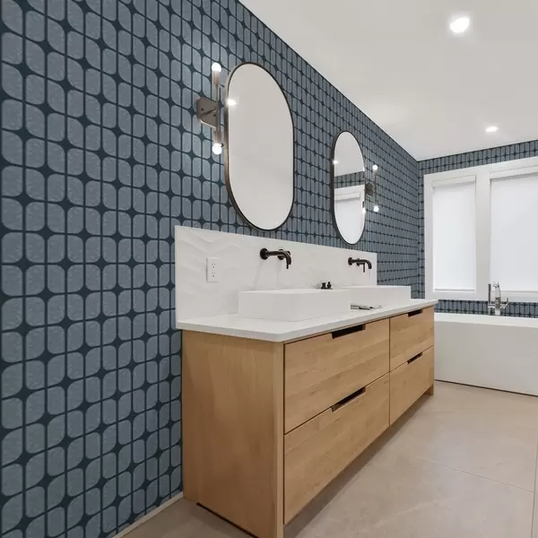 Papel tapiz Fondo azul oscuro con mosaico gris de azulejos redondeados. Nr. a01068v1