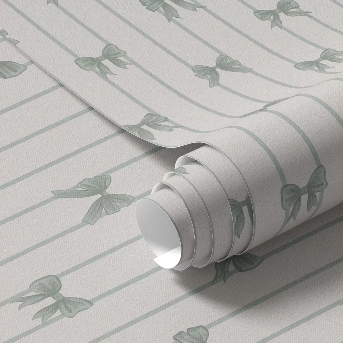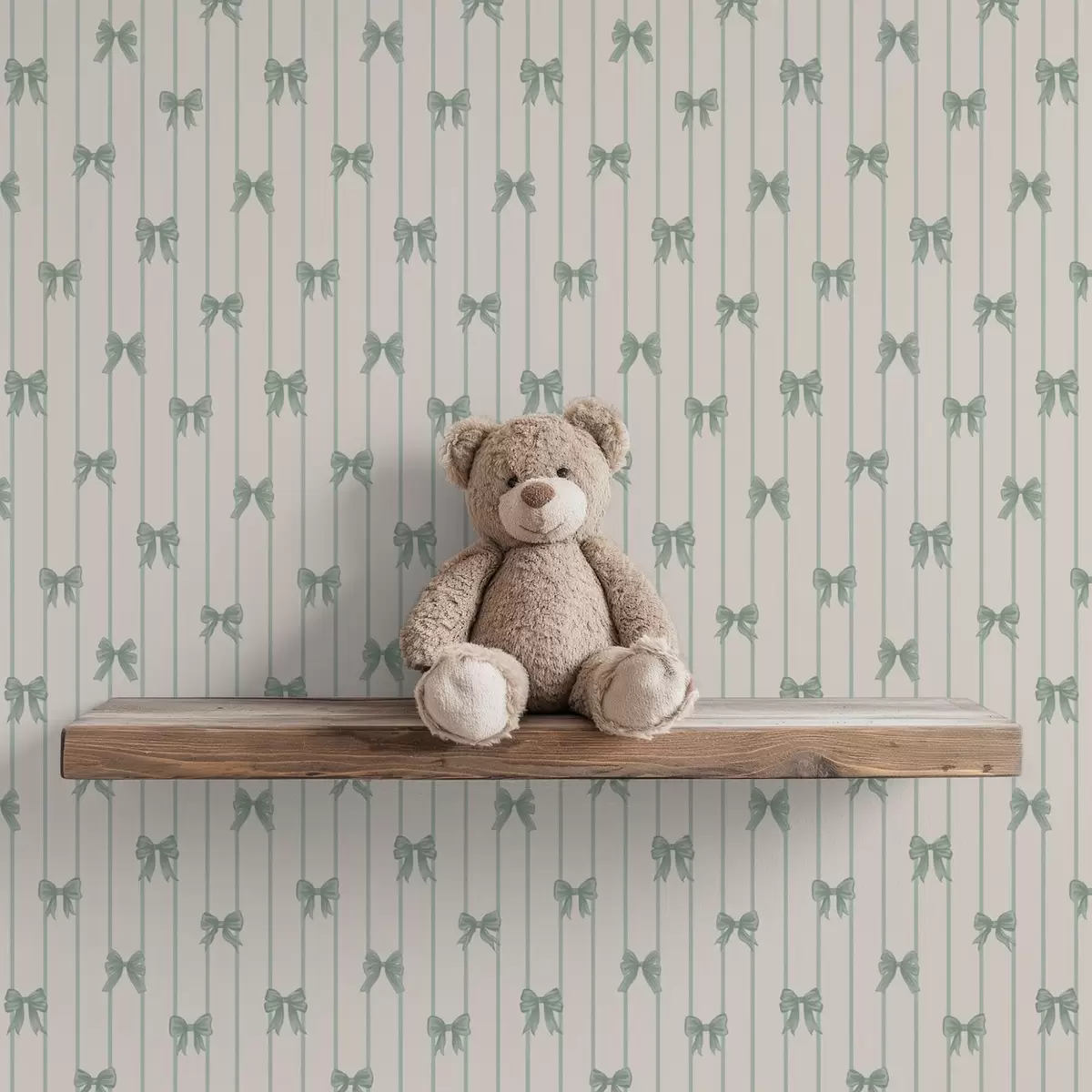 Papel tapiz Pequeños lazos verdes a rayas sobre fondo beige Nr. a01076v2
