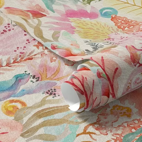 Papel tapiz Acuarela de jardín submarino con corales y algas marinas Nr. a01083