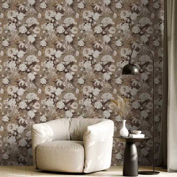 Papel tapiz Peonías beige cálidas sobre un fondo texturizado Nr. a01087