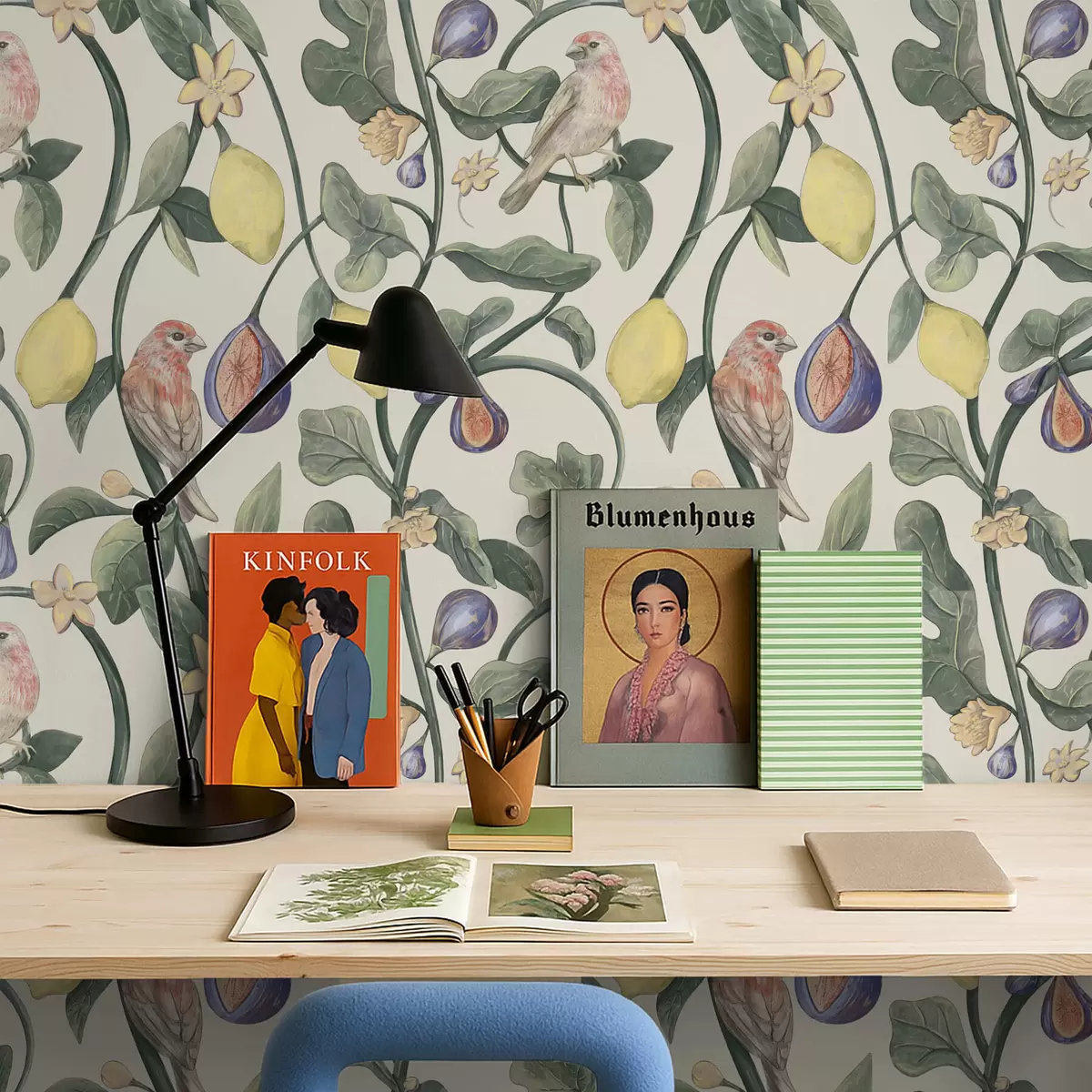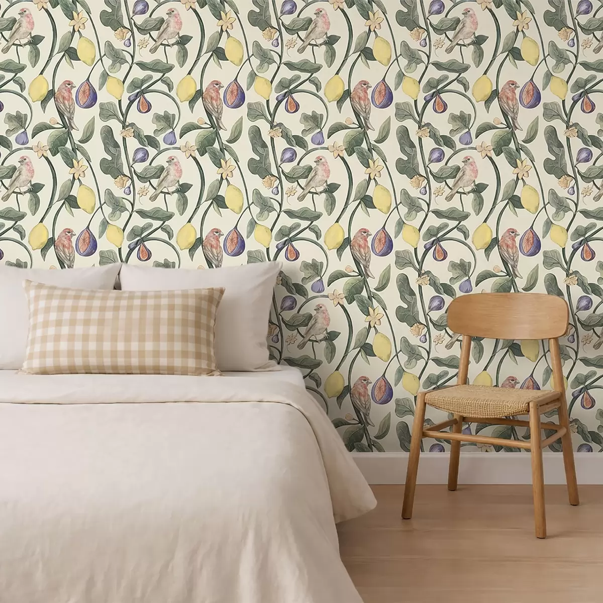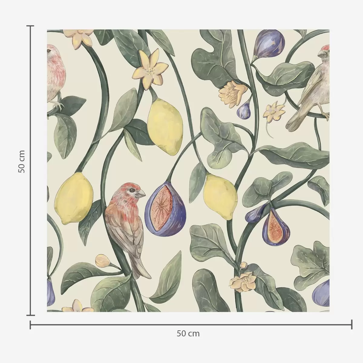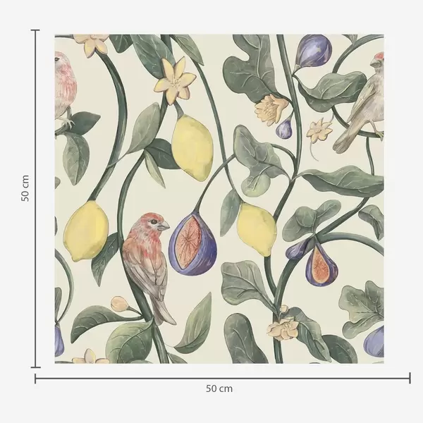 Papel tapiz Pájaros entre hojas y frutos Nr. a01107
