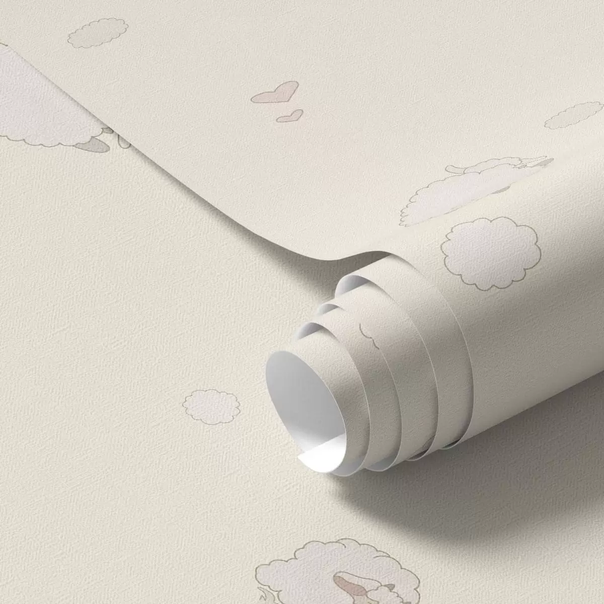Papel tapiz Bonito estampado con ovejas y pequeños corazones. Nr. a01109