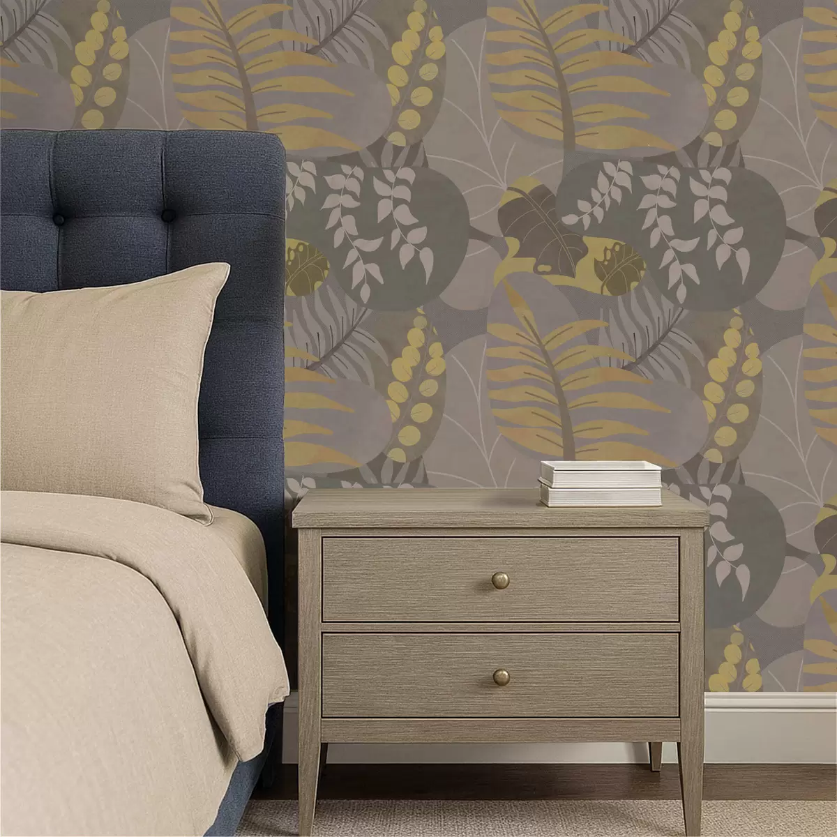 Papel tapiz Hojas abstractas en tonos grises y amarillos Nr. a01112