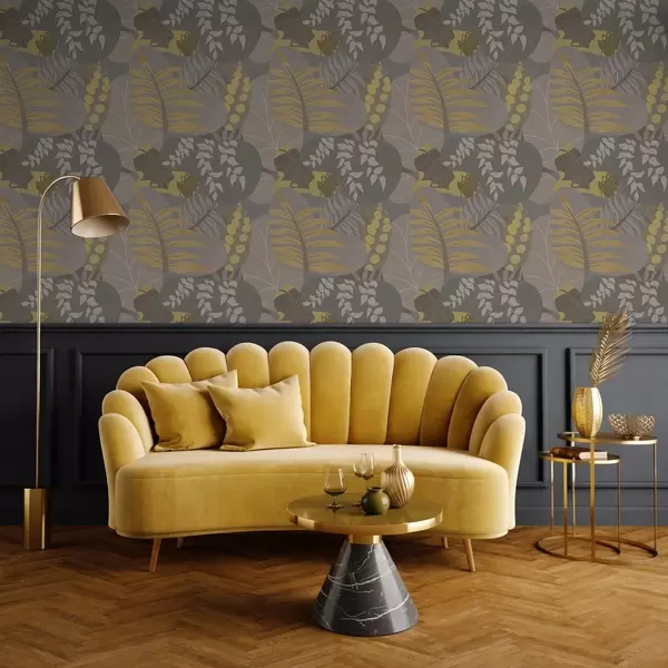 Papel tapiz Hojas abstractas en tonos grises y amarillos Nr. a01112