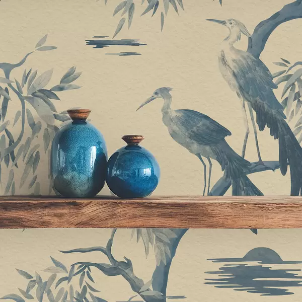 Papel tapiz Pájaros en una rama en tonos azules Nr. a01116