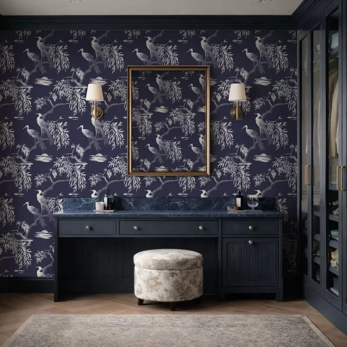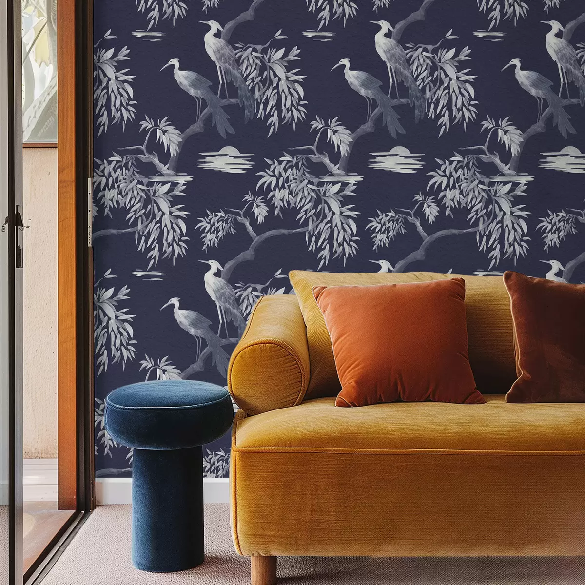 Papel tapiz Pájaros en una rama sobre fondo azul oscuro Nr. a01116v1