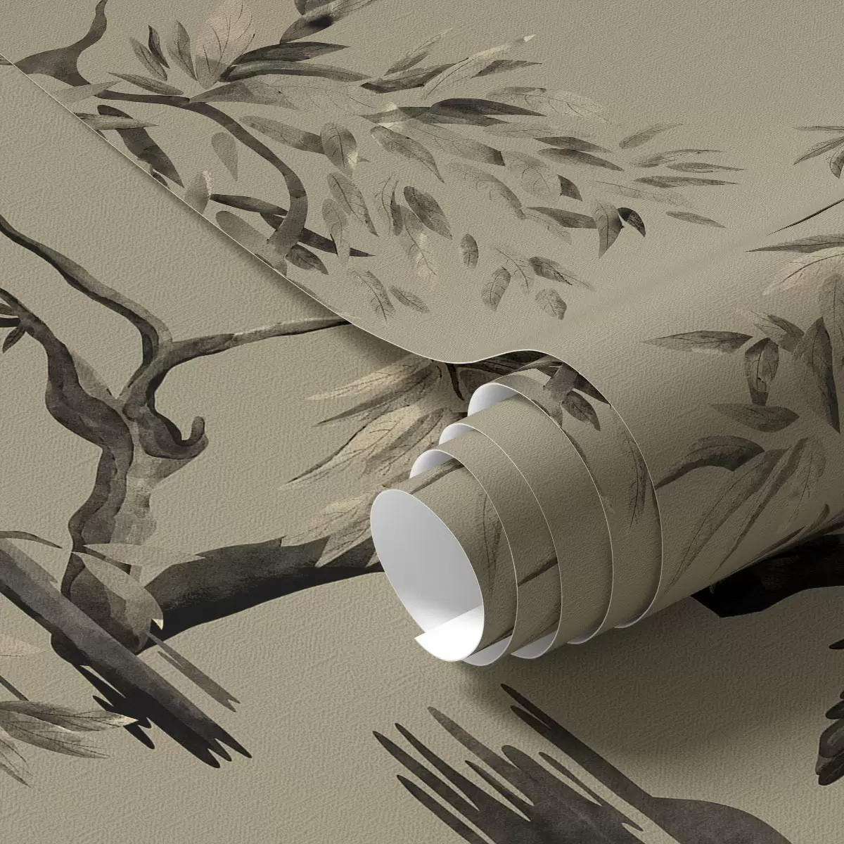 Papel tapiz Pájaros en una rama en tonos monocromáticos Nr. a01116v2