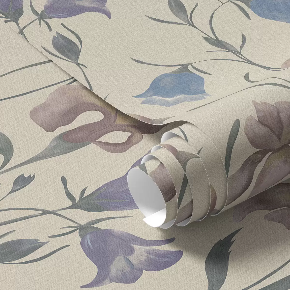 Papel tapiz Estampado floral en tonos pastel sobre fondo claro. Nr. a01118