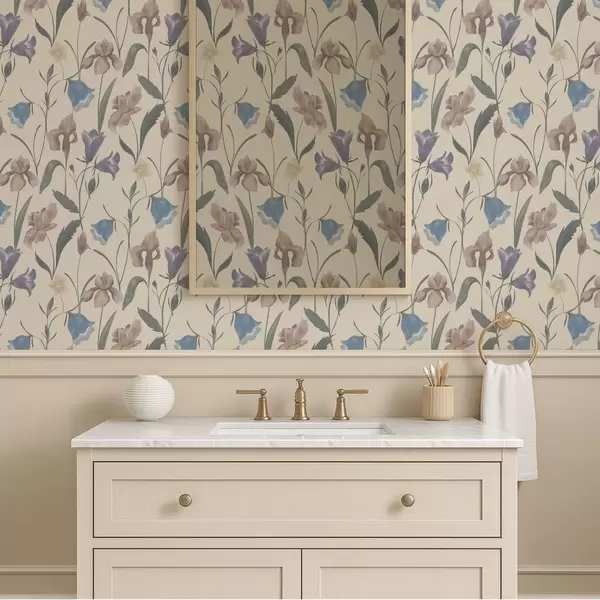 Papel tapiz Estampado floral en tonos pastel sobre fondo claro. Nr. a01118
