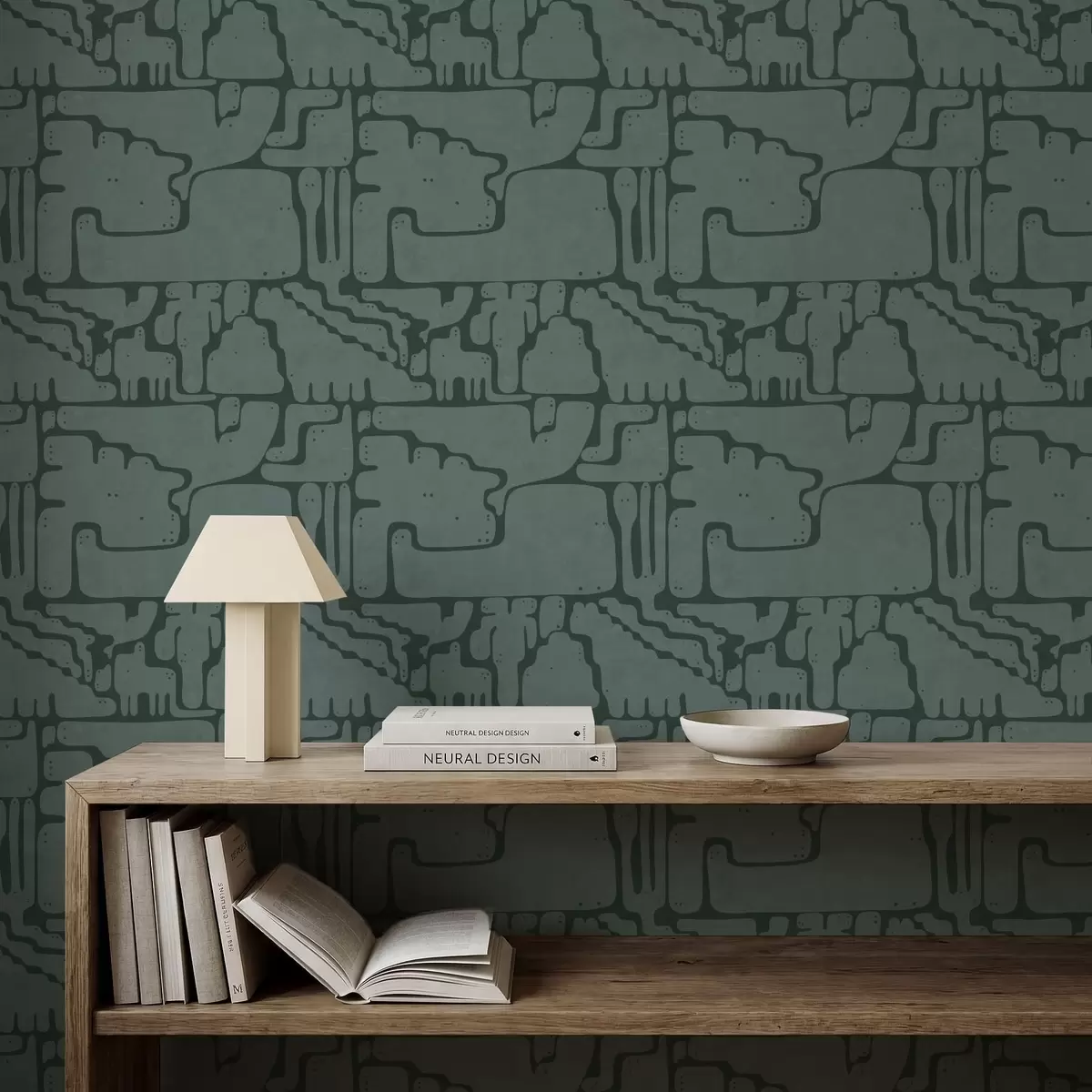 Papel tapiz Patrón abstracto en tonos verde azulado Nr. a01122v3