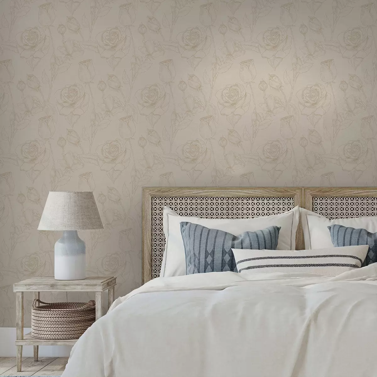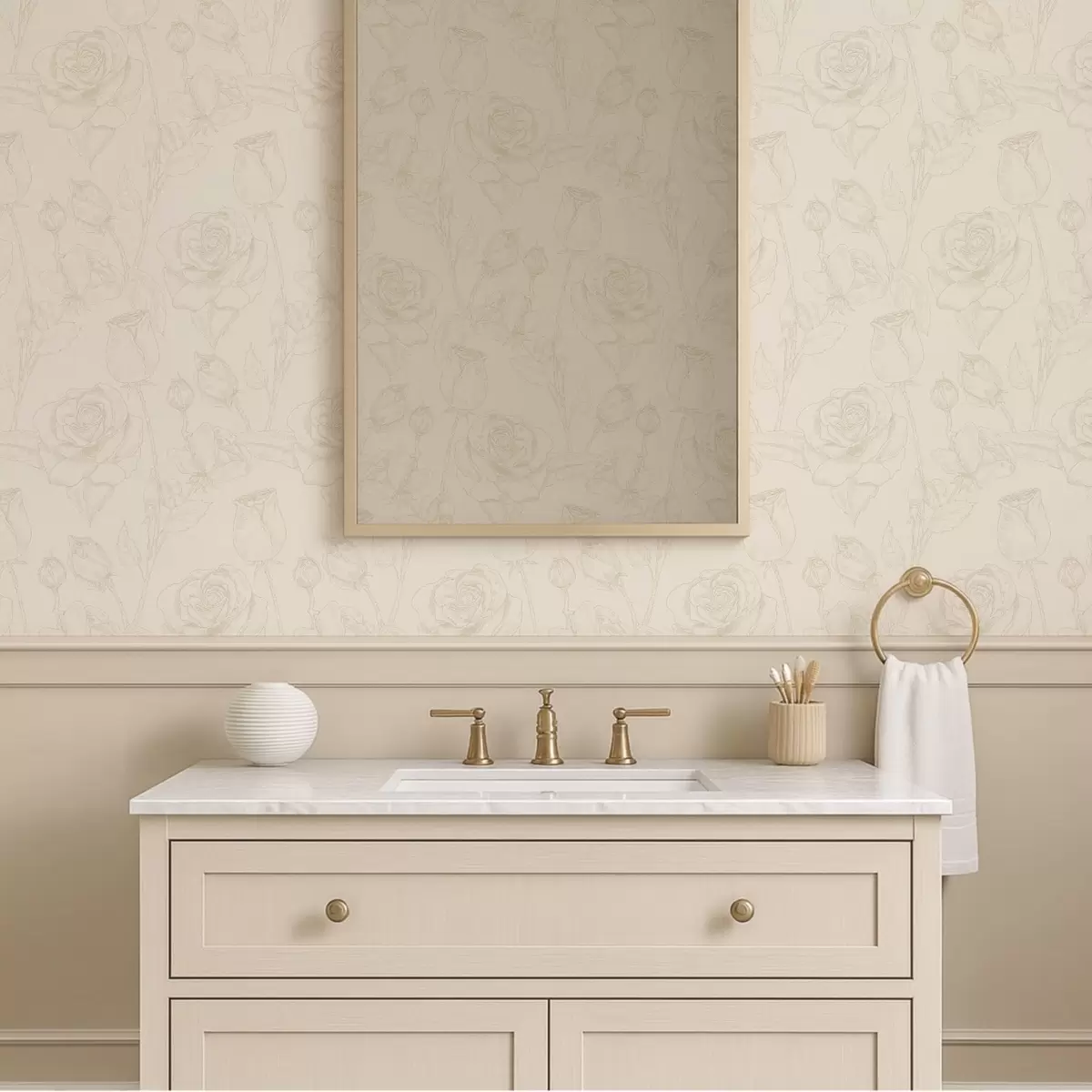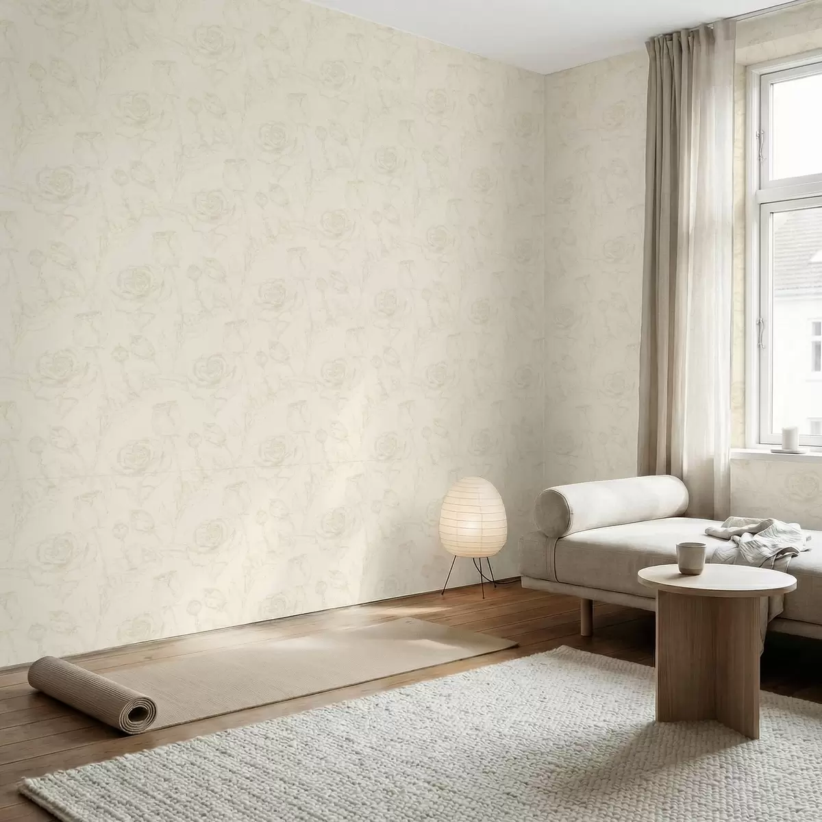 Papel tapiz Patrón de rosas claras sobre fondo beige Nr. a01124