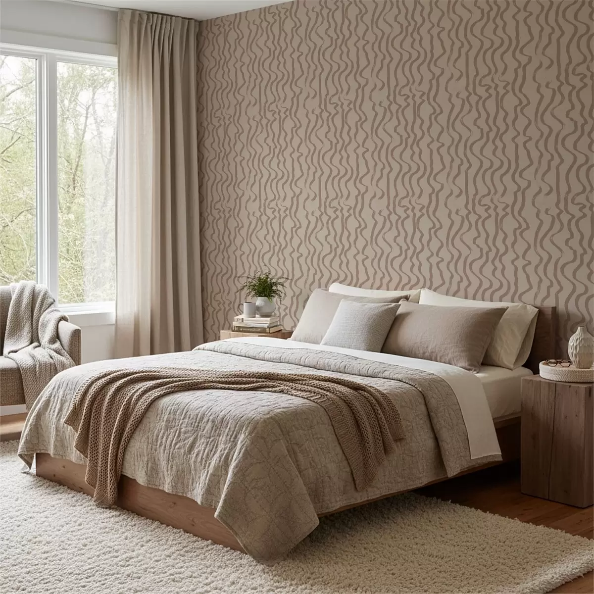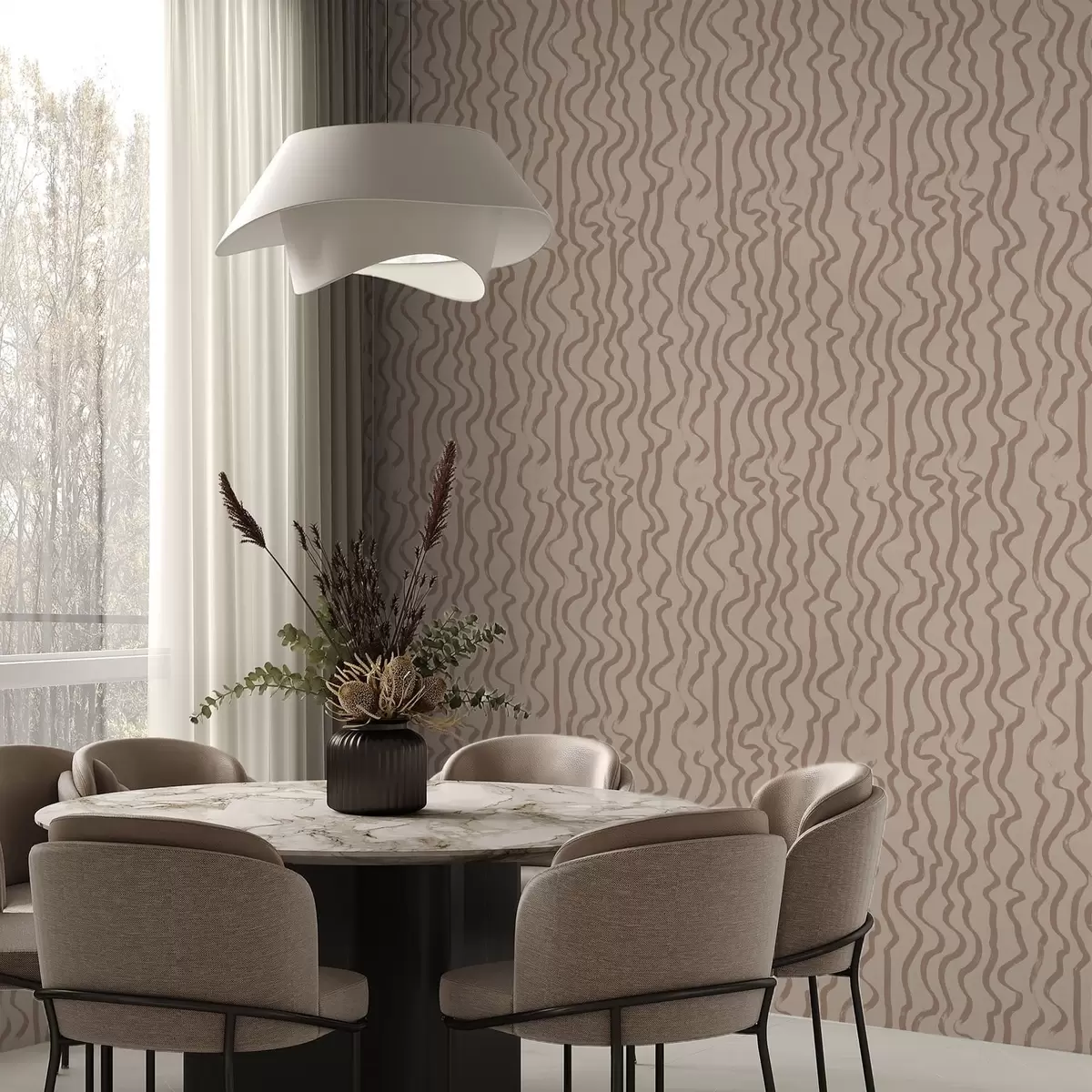 Papel tapiz Líneas onduladas de color beige sobre fondo claro Nr. a01168v2