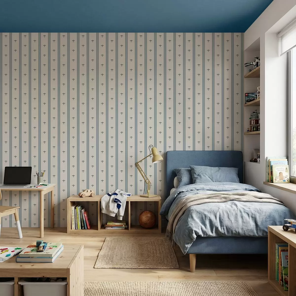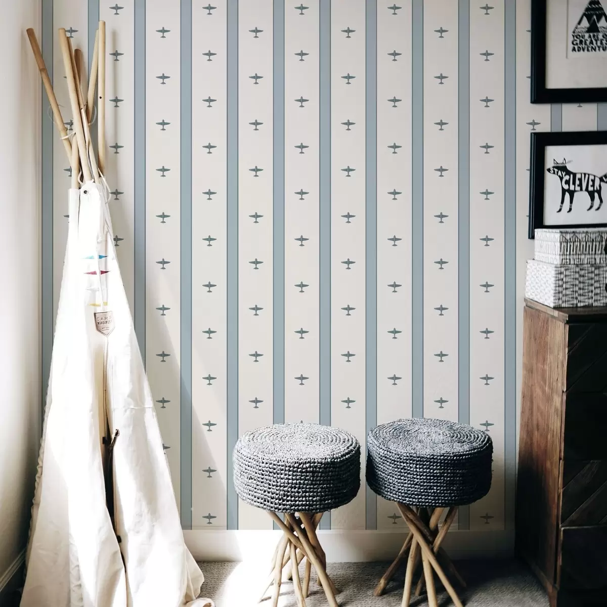 Papel tapiz Aviones pequeños a rayas sobre fondo azul Nr. a01171
