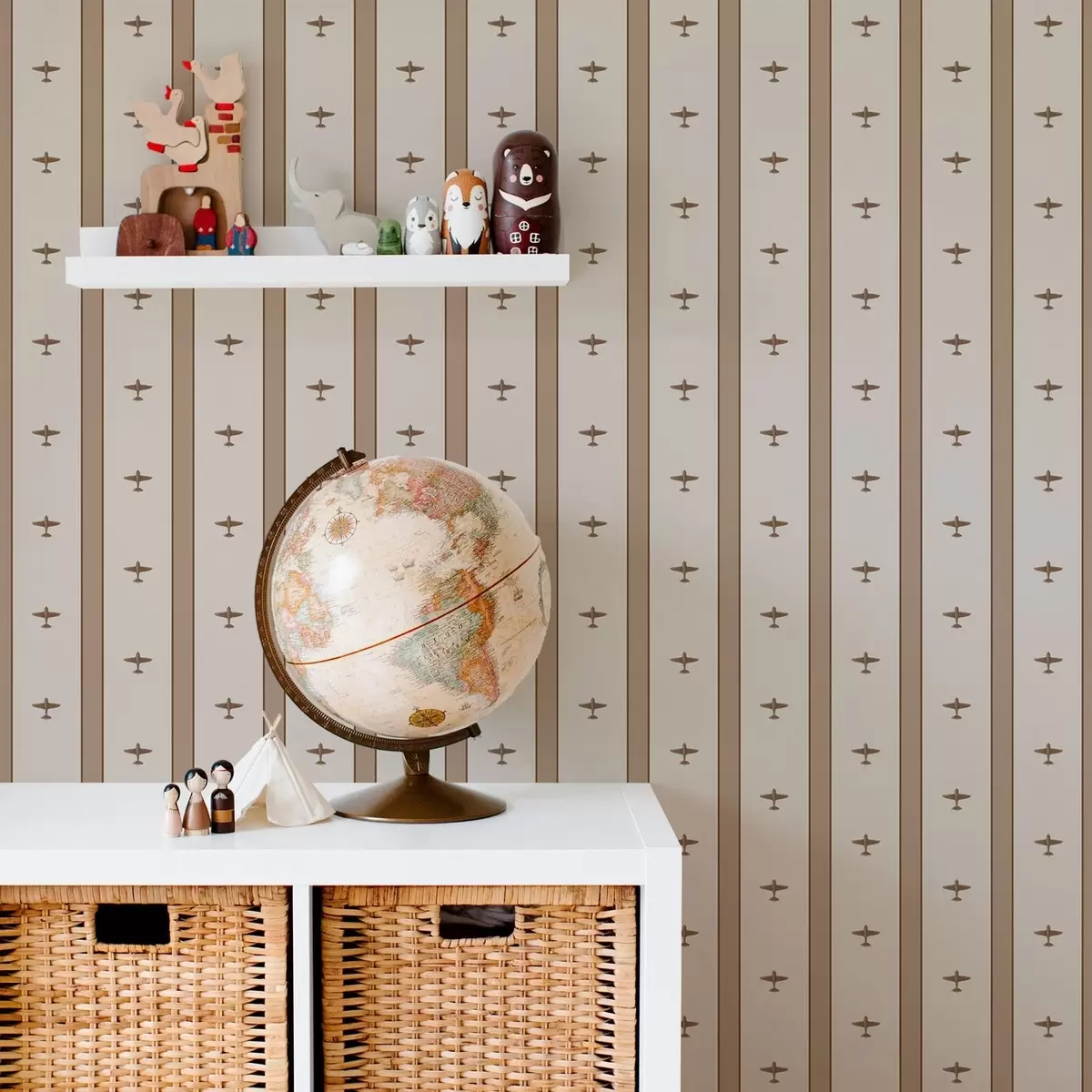 Papel tapiz Aviones pequeños a rayas sobre fondo marrón Nr. a01171v2