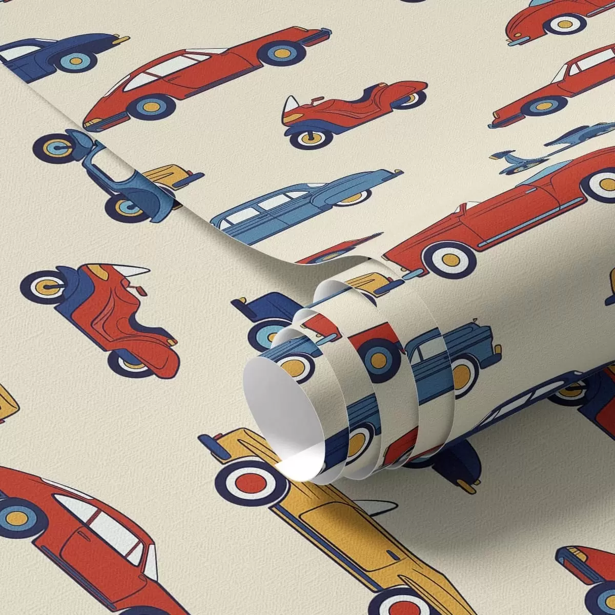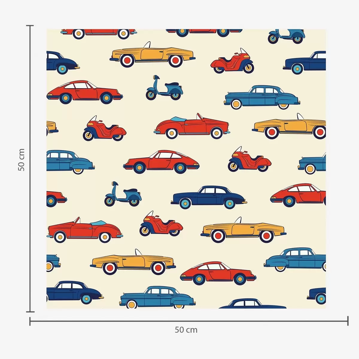Papel tapiz Coches y motos retro de colores vivos sobre un fondo claro Nr. a01172v1