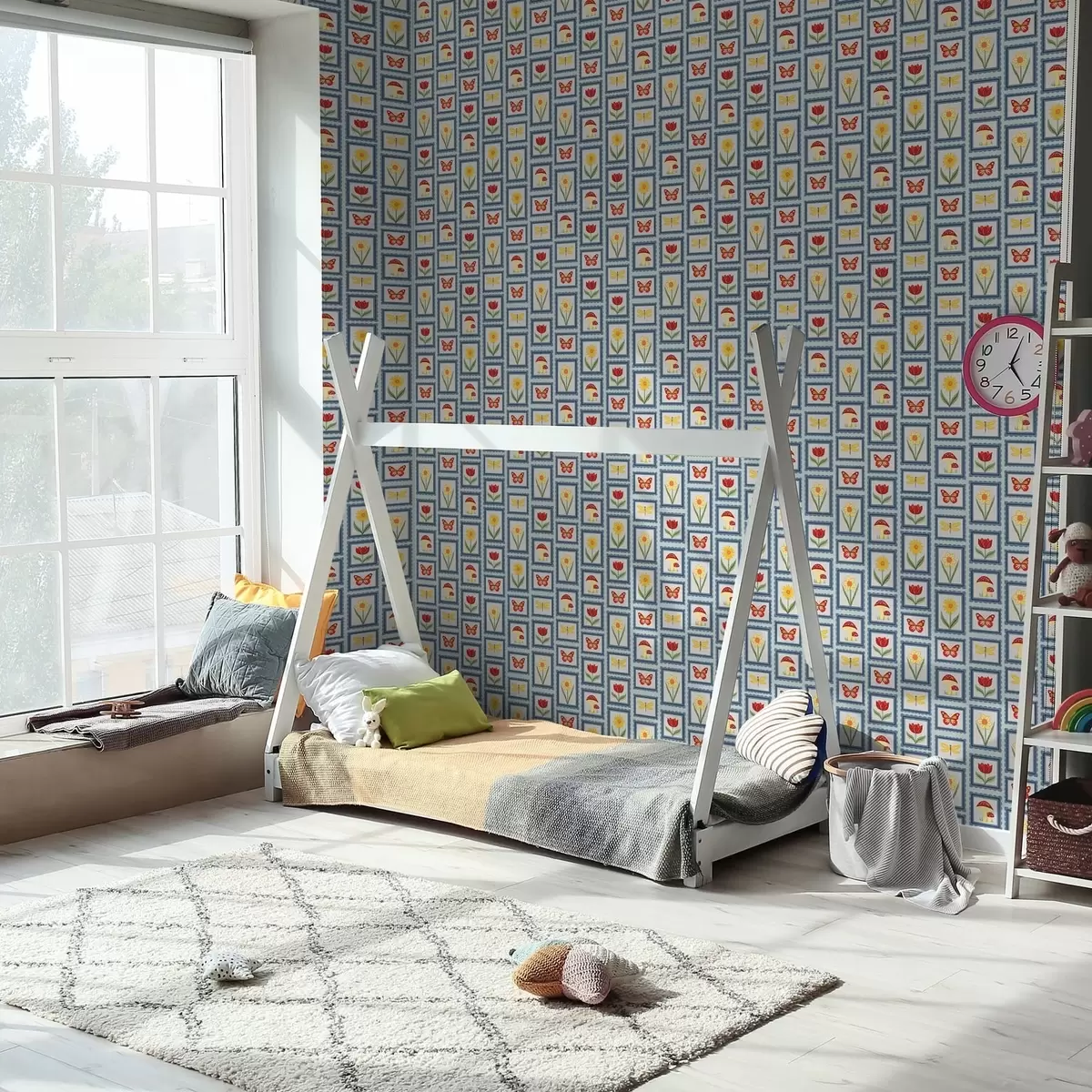 Papel tapiz Ilustraciones enmarcadas en tonos azules Nr. a01175v2