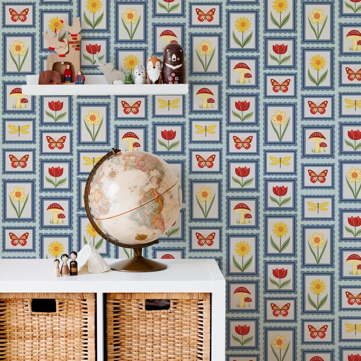 Papel tapiz Ilustraciones enmarcadas sobre fondo azul Nr. a01176