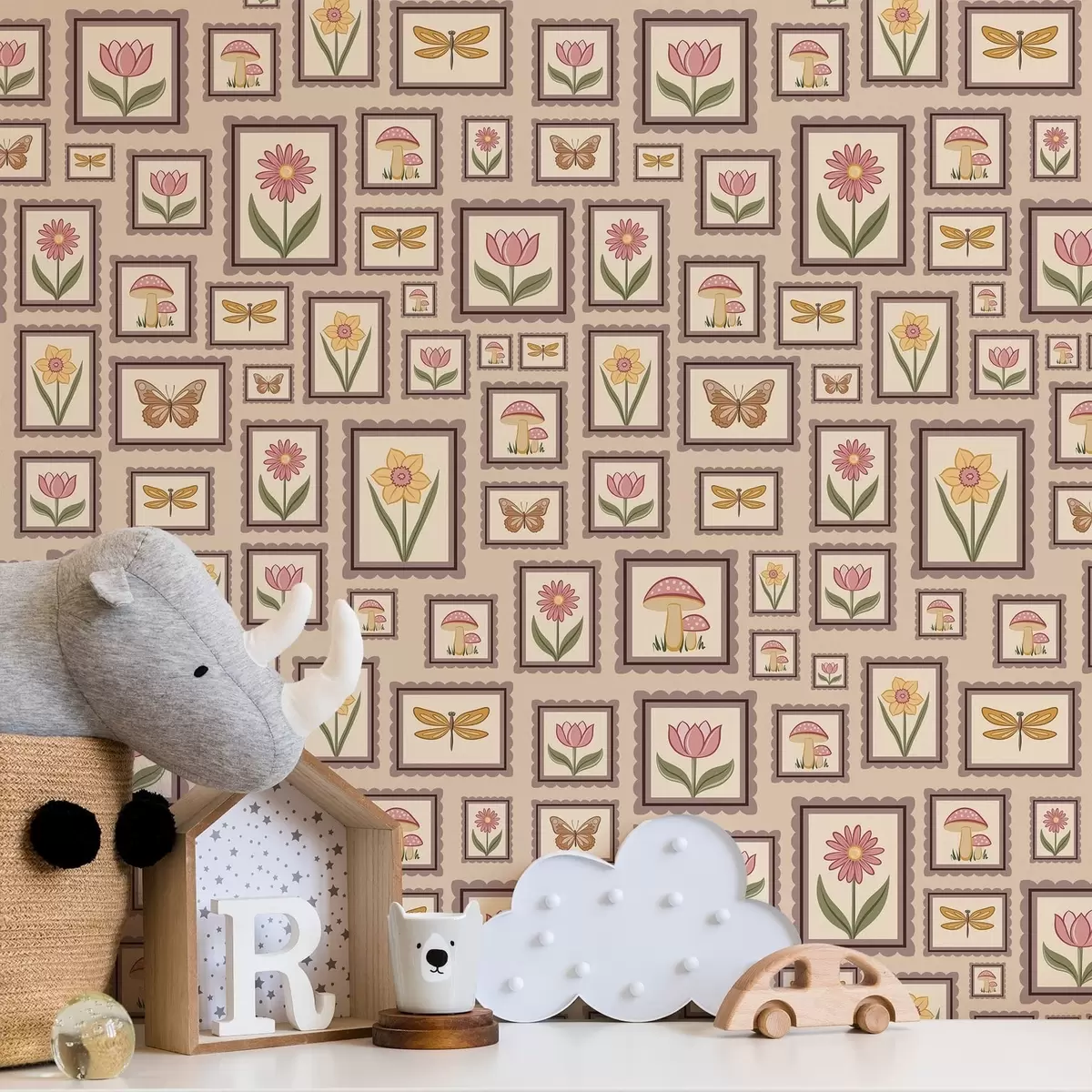 Papel tapiz Ilustraciones enmarcadas en cálidos tonos beige Nr. a01176v2