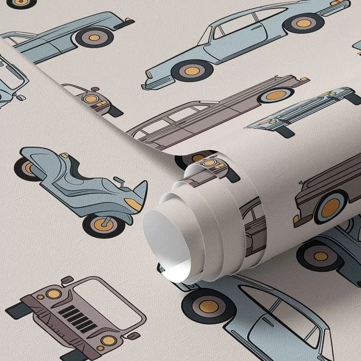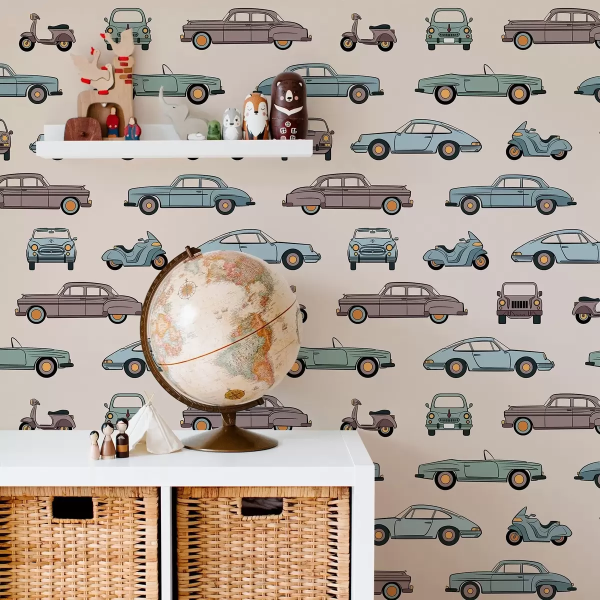 Papel tapiz Coches y motos retro sobre fondo beige Nr. a01178v1