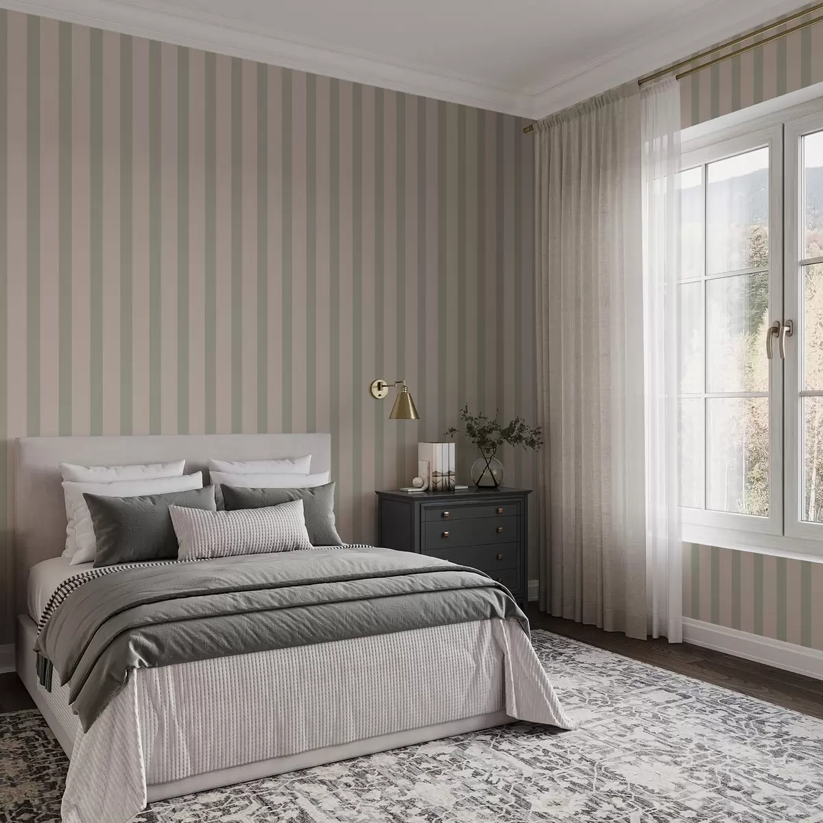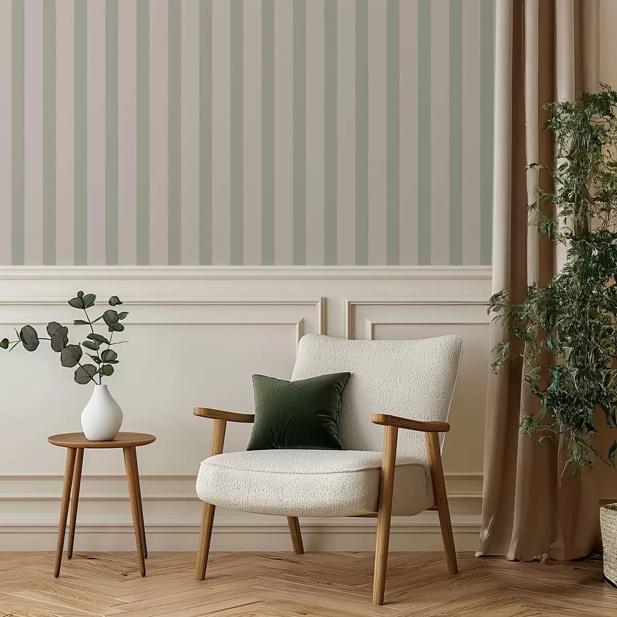 Papel tapiz Rayas verticales verdes y beige Nr. a01180